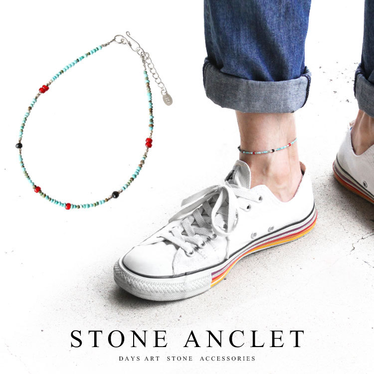 アンクレット メンズ ブラックスピネル ターコイズ オニキス ホワイトハート 極細 天然石ブレスレット ストーンアンクレット