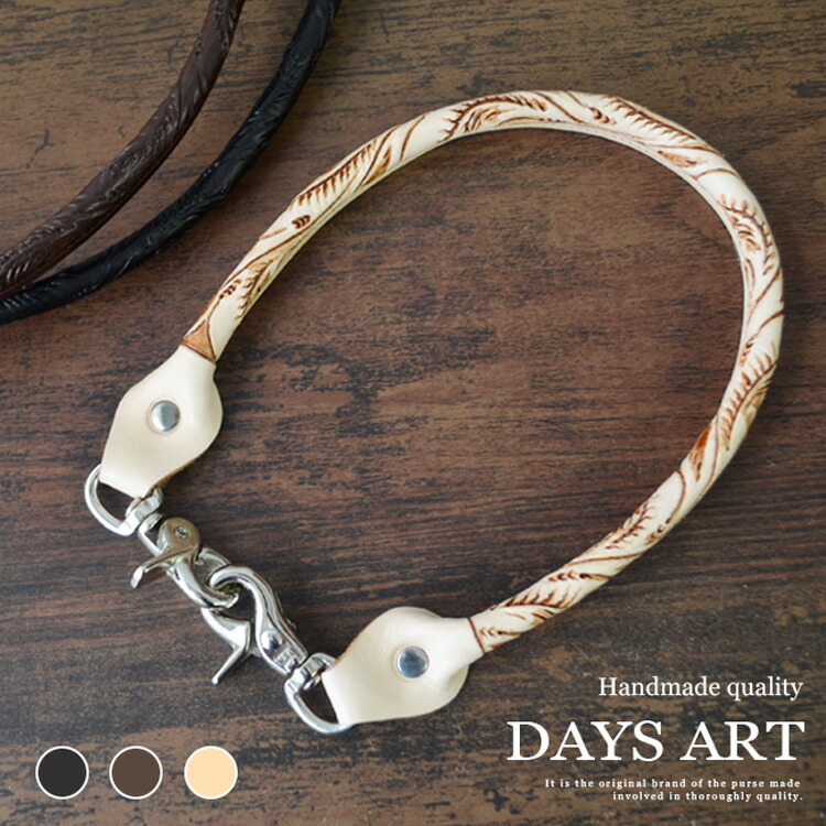 ウォレットコード ウォレットチェーン アラベスクカービング 手彫り メンズ 本革 サドルレザー アンティーク ナスカン 57cm