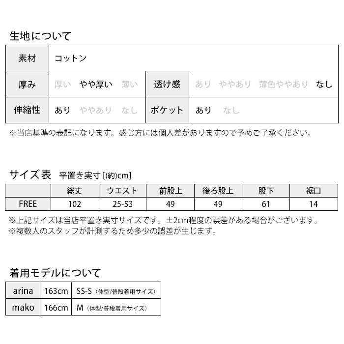 ・生産時期により、色味やストレッチ性能が多少異なる場合がございます。