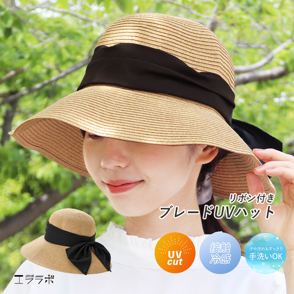 ブレードハット レディース UVカット UPF50+ 接触冷感 リボン 帽子 つば広ハット UV対策 手洗い可能 折りたたみ可能 *00