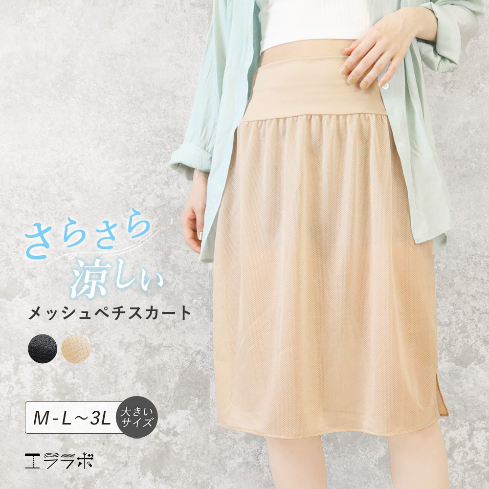 ◆特徴さらっと快適な穿き心地の メッシュペチスカートです。