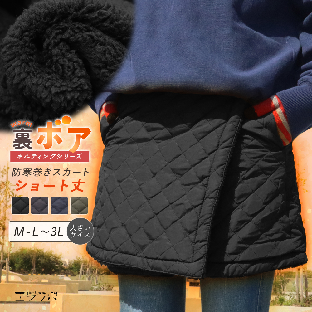 ◆特徴ショート丈の裏ボアキルティング防寒巻きスカートです。