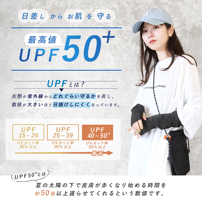さらに、UPF50+の紫外線カット機能付き!