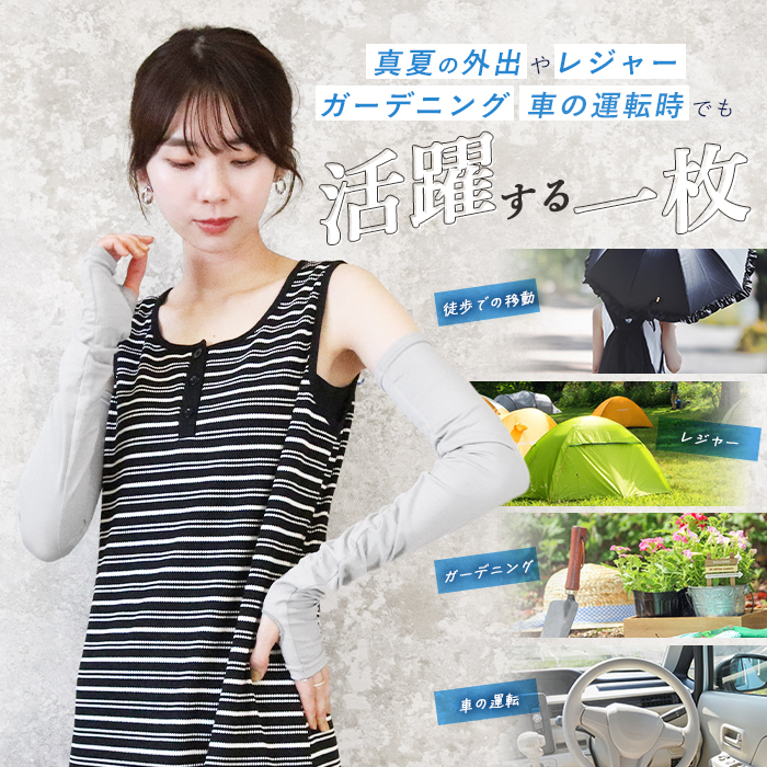 真夏の外出やレジャー、ガーデニング、車の運転時にも活躍する一枚です。