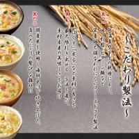 | セット内容 | ●ほぐし身入り かに雑炊 詳細はこちら ●ほぐし身入り さけ雑炊 詳細はこちら ●炙り たらこ雑炊 詳細はこちら ●まるごと 貝柱雑炊 詳細はこちら