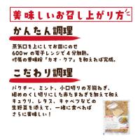 蒸気口を上にしてお皿に乗せ600Wの電子レンジで4分加熱し、香味粉を混ぜれば完成。