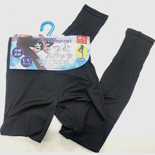 婦人さらつとスパッツ UVカット、冷感素材使用 10分丈 M-L,L-LLサイズ 黒色 、のびのびストレッチのひんやり爽やかな履き心地