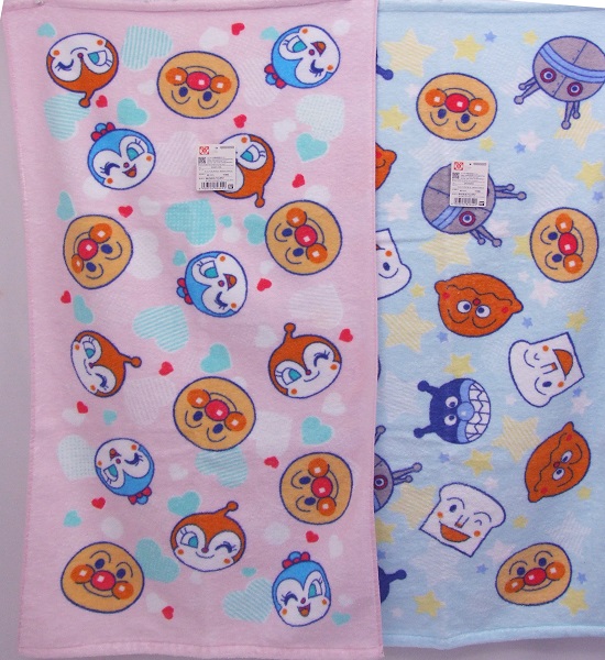 アンパンマン フェイスタオルサイズ:約72x34cm カラ:ブルー(スター)/ピンク(ハート)とても柔らかな無撚糸 パイル地 カラーをお選びください