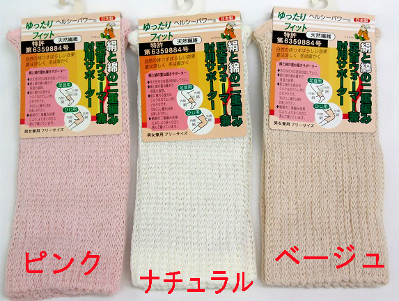 *天然素材の綿と絹を使用した、ずり落ちにくい、締め付けないゆったりフィットの