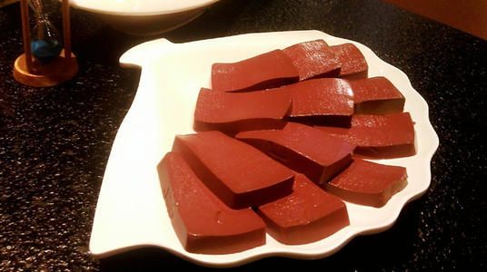 鴨の血を固めたもので、鉄分などの栄養素も豊富なことから、女性に人気の食べ物です。プニプニとした食感で、火鍋や豆腐、麻辣鴨血(鴨血入り麻辣スープ)などで食べることができます。