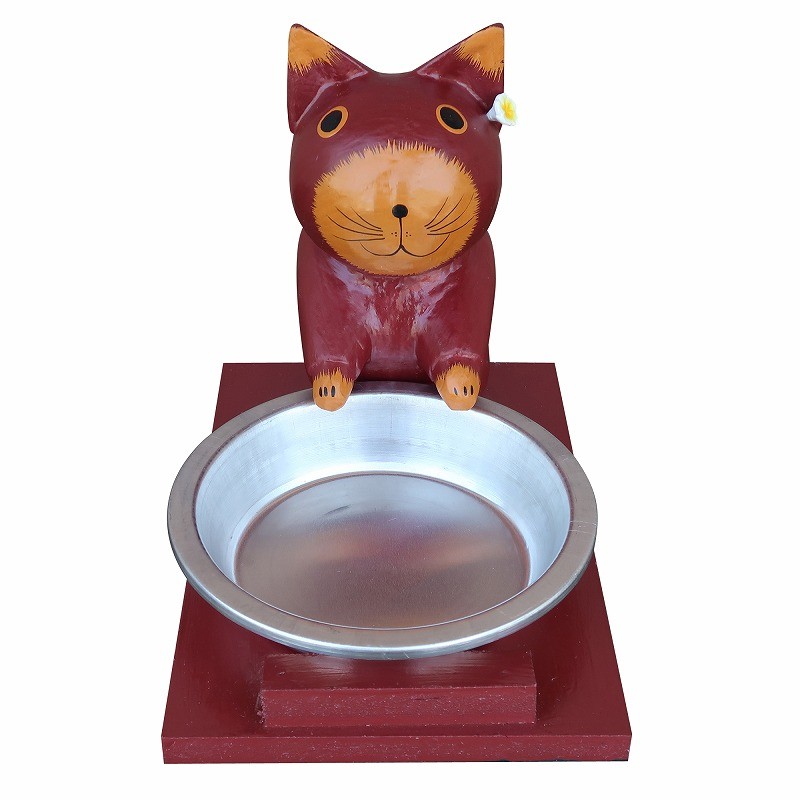 バリネコがトレイをもっているカワイイ餌入れです。これならペットも食事が楽しくなると思います。