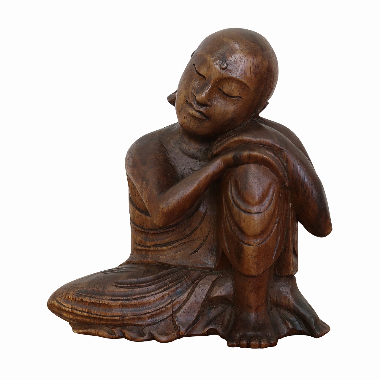リラックス小坊主の木彫り 20cm 木製 スワール無垢材 御坊様 坊さん 小僧さん 修行僧 木彫り彫刻 080653