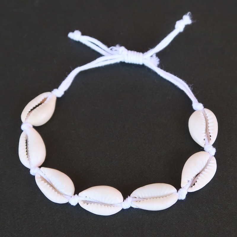 天然宝貝7個で作ったシェルブレスレットです。欧米のファッションモデルさんが去年の夏頃から着けていてビーチリゾートでも着けている人を最近よく見かけます。チョーカーとアンクレットとセットでもお勧めです。 このSサイズは手の小さな女性向けになります手が大きな方や男性には小さく装着が困難です。手が大きな方や男性はノーマルサイズをお勧めします。 チョーカー とセットでお勧めです。