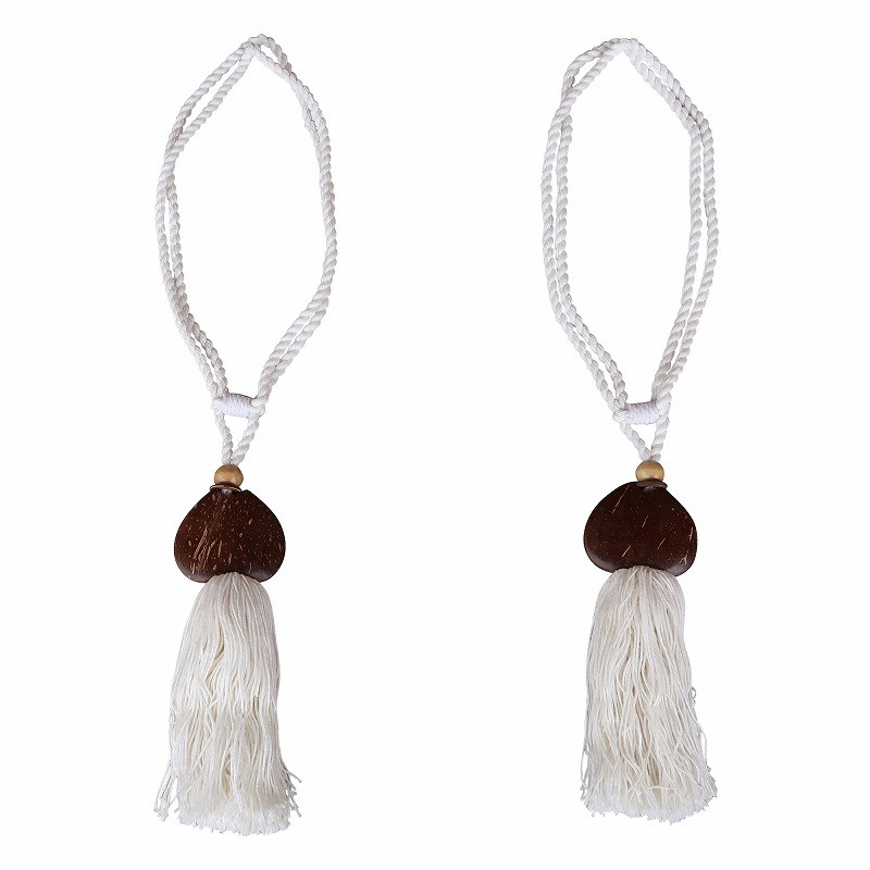 カーテンタッセル 2個セット コットン&ココナッツ スペード型 ハワイアン リゾート Boho スタイル カーテン留め 房【メール便OK】330608