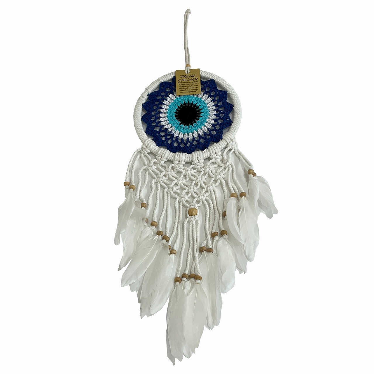 ドリームキャッチャー マクラメ 17cm ブルー ナザールボンジュウ アメリカン雑貨 タペストリー インディアン【メール便OK】330927
