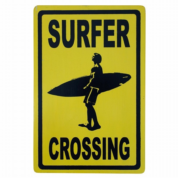 ハワイアンサインボード 20X30 サーファー横断中 SURFER CROSSING サーフィン サーファー 壁掛けレリーフ【メール便OK】350531