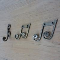 ウォールデコレーションとしてもお勧めの真鍮製の音符の形をしたフックです。別売のト音記号 ♪のフックと一緒にオススメです。 取付けネジ付き