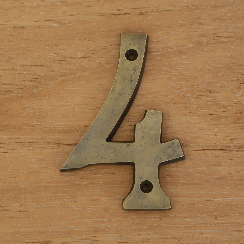 海外の家でよく見かける真鍮製番地表示のナンバープレートです。 真鍮にアンティーク加工を施しクスミをかけたブラックゴールド色です。 取り付けネジ付き