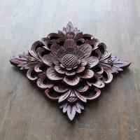 花の木彫りの壁掛けレリーフ 四角形 19X19 壁飾り 壁装飾 透かし彫り彫刻 天然木 花柄 ひし形 菱型【メール便OK】650121