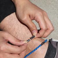 くるぶし出しパンツにもバッチリ合わせる事が出来るのがブレイドアンクレットの良い所!カラーを2本着けると印象が変わるから重ね付けも楽しんで欲しい。