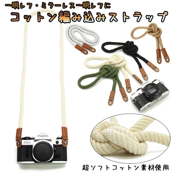 | ☆一眼レフ / ミラーレス一眼レフ用 編み込みコットンカメラネックストラップ 【Lサイズ】☆ |