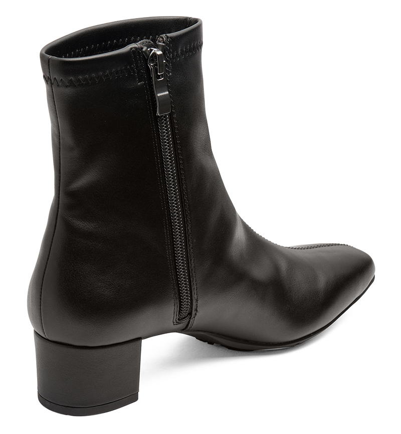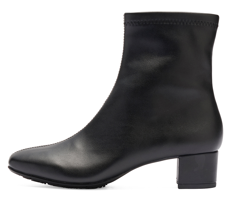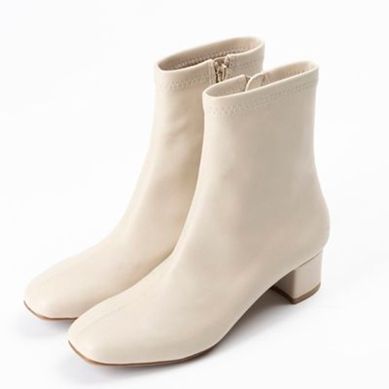 ・約4センチヒールのスクエアトゥのストレッチブーツ。
