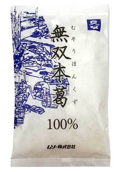 ◎葛(マメ科)の根から取り出した澱粉を白く晒し上げ(水洗い)、純白の本葛粉を作り上げる「吉野晒」と呼ばれる製法で作りました。