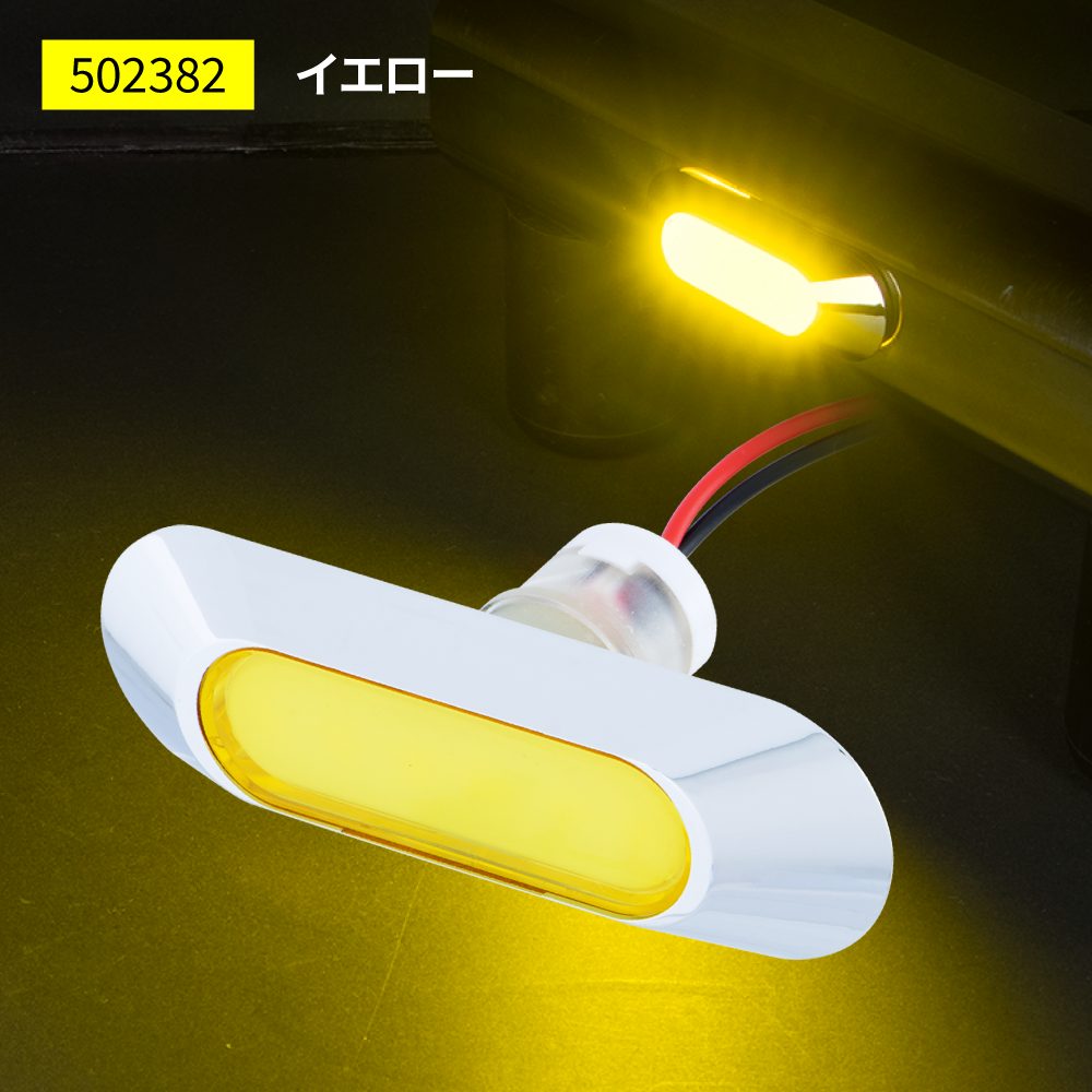 LEDフラットマーカー ユーロスタイル 楕円型 イエローレンズ/LEDイエロー(黄色) 12V/24V車共用 (502382)