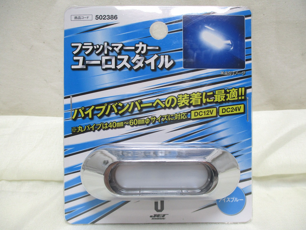 LEDフラットマーカー ユーロスタイル 楕円型 クリアレンズ/LEDアイスブルー(水色) 12V/24V車共用 (502386)