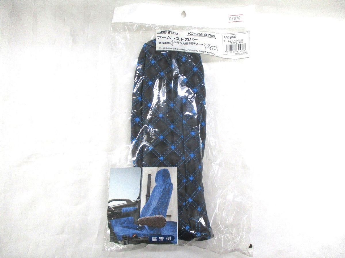 Kizuna アームレストカバー ブラック/黒糸 三菱ふそう 大型 NEWスーパーグレート 1席分 594942
