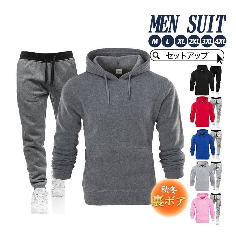 上下セット セットアップ メンズ パーカー フード付き 裏起毛 裏ボア チノパン ロングパンツ 春 秋 秋服 冬 ジャージ 長袖 部屋着 ゆったり