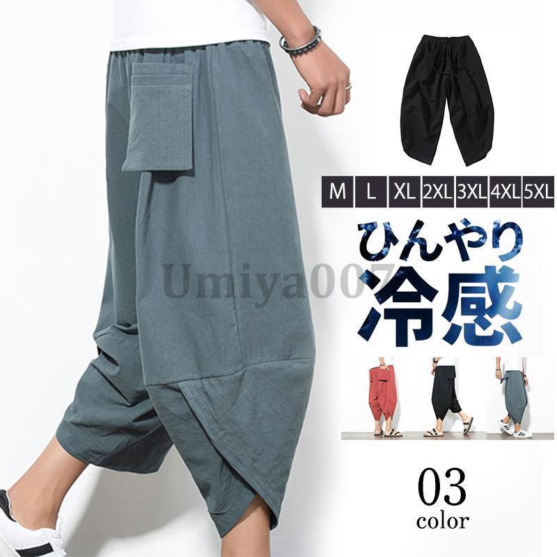 サルエルパンツ メンズ ワイドパンツ ひんやり リネンパンツ アンクルパンツ クロップドパンツ ジョガーパンツ 接触冷感 薄手 涼しい スポーツ