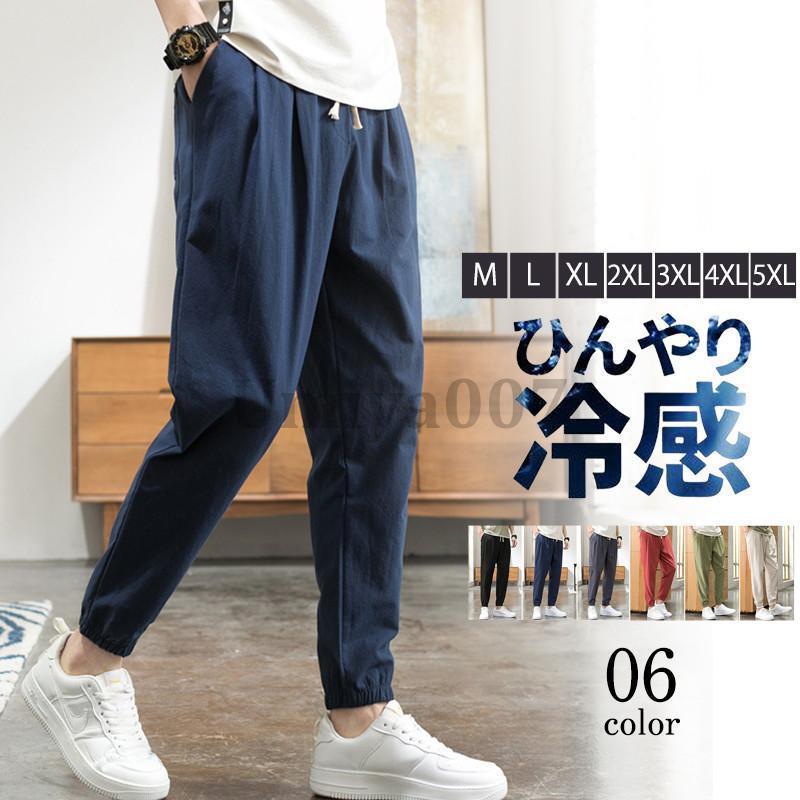 サルエルパンツ メンズ ジョガーパンツ リネンパンツ 接触冷感 ひんやり 涼しい 薄手 通気性 スポーツ 速乾 イージー 夏 部屋着 お出かけ