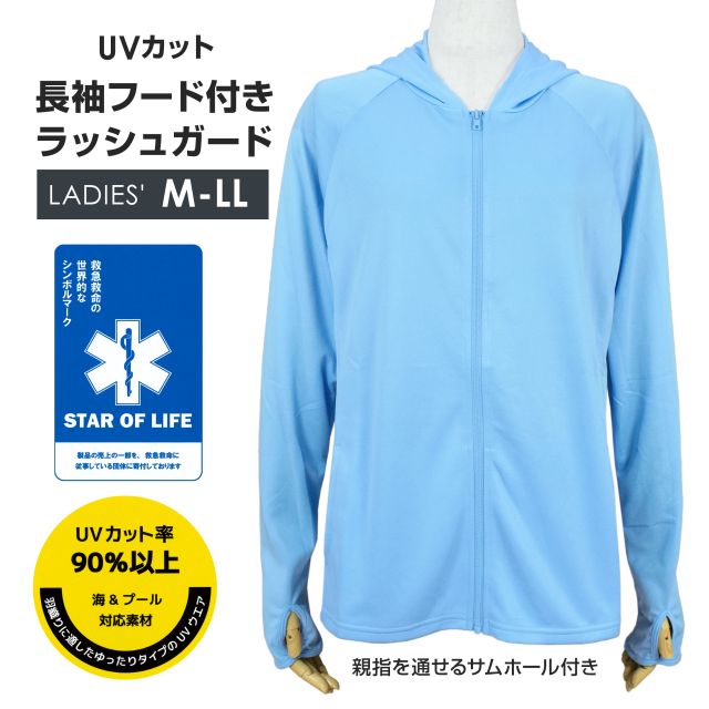 STAR OF LIFE スターオブライフ レディース UVカット フード付き 長袖ラッシュガード 。