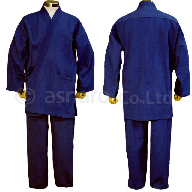 メンズ 作務衣 大人 厚手 デニム シンプル 上下セット 和装 綿100%