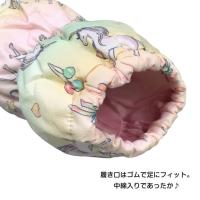 ||||▼ 商品説明||はっ水加工 中綿入り 足カバー 。||ユニコーン のプリントが 可愛い 中綿入りあたたか スノーカバーです。雪や風から足元をしっかりカバー。足底にはめられるゴムは、太めのゴムなので ズレも防止してくれます。||※ 柄の出方は個々の商品によってそれぞれ異なります。||||※別売りのアイテムとお揃いにできます。||ジャンプスーツ(90cm 95cm) 品番 244820BAS||ジャンプスーツ(100cm 110cm)品番 244820TAS||スノーブーツ 品番 244015AS||スノーミトン 品番 244024AS||ニットキャップ 品番 244008AS||||※ 赤ちゃん ベビー キッズ 園児 女児 ガールズ 子供用||※ 通園 外遊び 雪遊び お散歩 防寒 お出かけ お散歩 旅行||||||▼ 配送方法||この商品はメール便にて送料無料となります。||【注意事項】||・メール便は「日本郵便ゆうパケット」または「ヤマト運輸ネコポス」のどちらかでの発送となります。||どちらで発送するかはお選び頂けません。||・メール便は配送日時指定不可・破損紛失時の補償無し・代引不可となります。||※配送日時指定をする場合や破損・紛失時の補償を希望される場合、メール便以外での配送を希望される場合は個別
