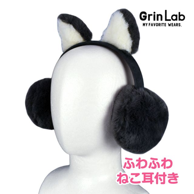GrinLab グリンラボ フワフワあったか ねこ耳付き イヤーマフ。