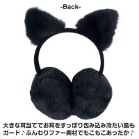 コロンとした形がかわいい ねこみみ付きの ふわふわ 耳当てです。つけるとかわいい黒猫ちゃんに変身。