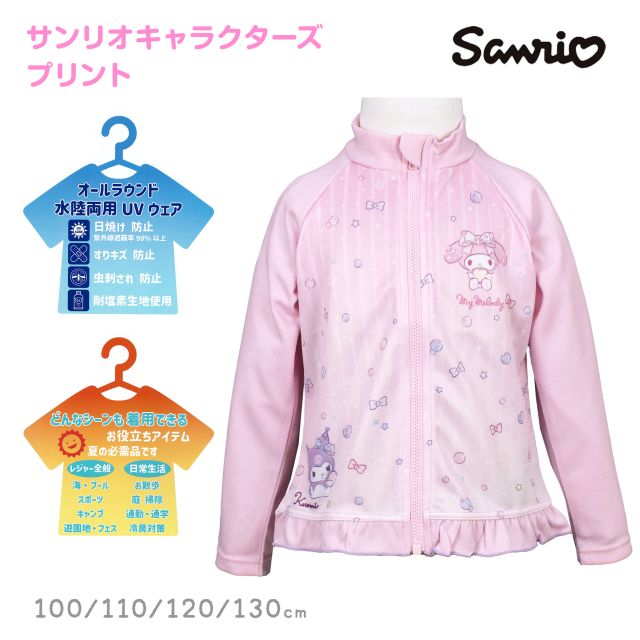 (ゆうパケット送料無料)ラッシュガード 長袖 キッズ 子供 マイメロ クロミちゃん ジップアップ UVカット