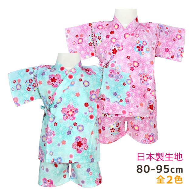 (メール便送料無料)甚平 ベビー キッズ 女の子 子供 さくら 和柄 日本製 生地 上下 セット 綿100%