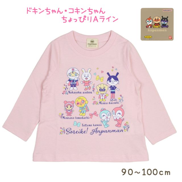 ロールパンナ ウサこ クリームパンダ てっかのマキちゃん あかちゃんまん メロンパンナ コキンちゃん ドキンちゃん などかわいいキャラクターが勢ぞろいしたプリント カットソーです。Aラインのシルエットがかわいい、コットン100%の優しい着心地の長袖Tシャツです。
