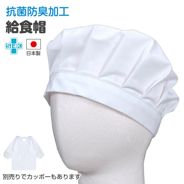 (ネコポス便送料無料)給食帽子 子供用 抗菌 防臭 日本製 キッズ 男の子 女の子 無地 白 給食着