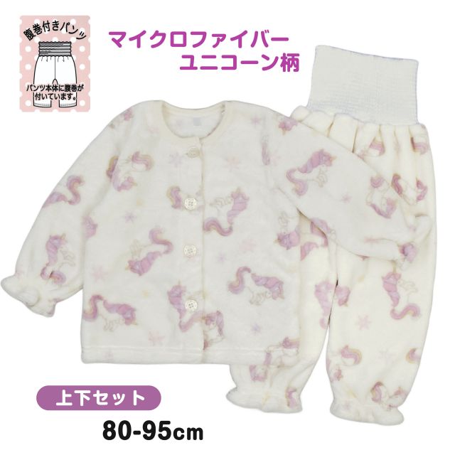 マイクロファイバー ユニコーンプリント 腹巻き付き 長袖パジャマ 。