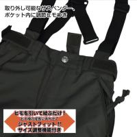 はっ水加工 耐水圧 コーティングの サロペットパンツ です。防水 防風性を発揮し雪 雨 風の侵入を防ぎます。ヒップ部分はシームテープ加工により お尻の縫い目から水を通さない仕様になっています。サスペンダー はマジックテープで取り外し可能。ウエストはサイドファスナーを開くと広がりゆったり履けます。ファスナー付き ポケット 2つ。スノーガード エッジガード あり。