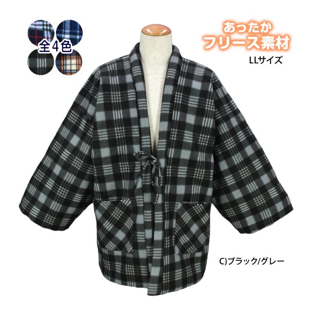 ||||▼ 商品説明||男性用 大きいサイズ フリース 中綿入り はんてん 。||表地はフリースの チェック柄 裏地はキルティング。ポケット は前に2つ。共布のひも付き。半天 を着ると、寒い時期には暖かく快適に過ごせます。冬はお家にいる時間も長くなりがちなので、暖かな 半纏 がおすすめです。||※模様や柄の出方は個々の商品によってそれぞれ異なります。||※生産ロットの違いにより裏地の色が異なる場合があります。|| カラーはお選び出来ませんのご了承願います。||||※ ジュニア スクール 男子 男の子 男性 紳士 シニア 大人用||※ 部屋着 リラックスウェア ルームウェア 羽織 袢纏 ちゃんちゃんこ 丹前 アウター||||||▼ 配送方法||この商品は佐川急便宅配便利用で送料無料となります。||ご注文時には送料が表示されますが当店での正式受注時に訂正させて頂きます。||【注意事項】||※他の商品との同梱の場合も規定サイズ内であれば送料無料にて承ることが可能です。|| 規定サイズを超えた場合や沖縄県や離島・遠隔地への配送等、佐川急便宅配便が利用できない場合は実費から割引でのご対応となります。||※代引手数料はお客様ご負担となります。||||▼ サイズ説明||