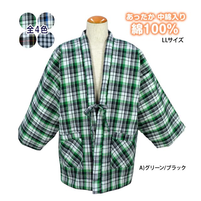 男性用 大きいサイズ 表地 綿100% 中綿入り はんてん 。