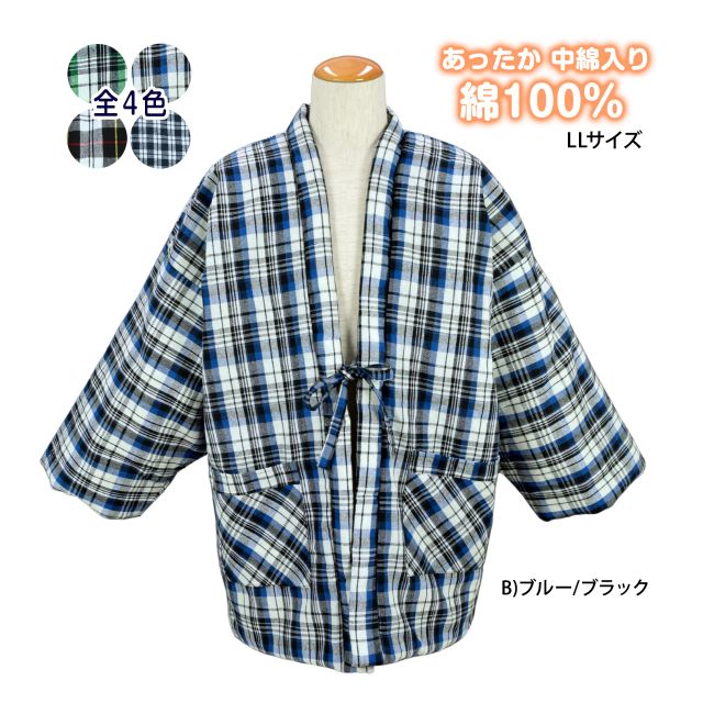 男性用 大きいサイズ 表地 綿100% 中綿入り はんてん 。