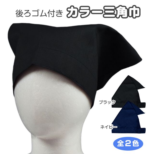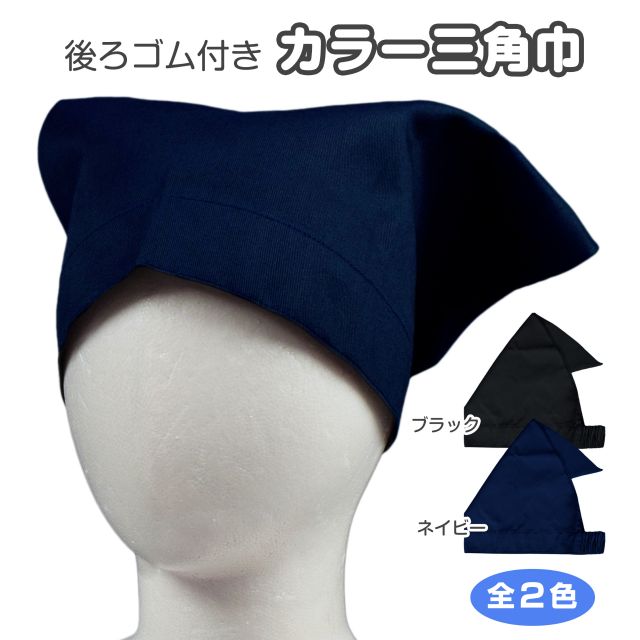 給食やお手伝いなどで活躍の三角巾。後ろにゴムが付いているので小さなお子様も簡単につけられます。ゴム部分は同色布使用。
