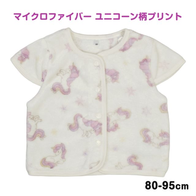 優しいカラーのユニコーンが可愛い肩付きベストです。