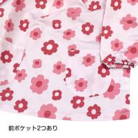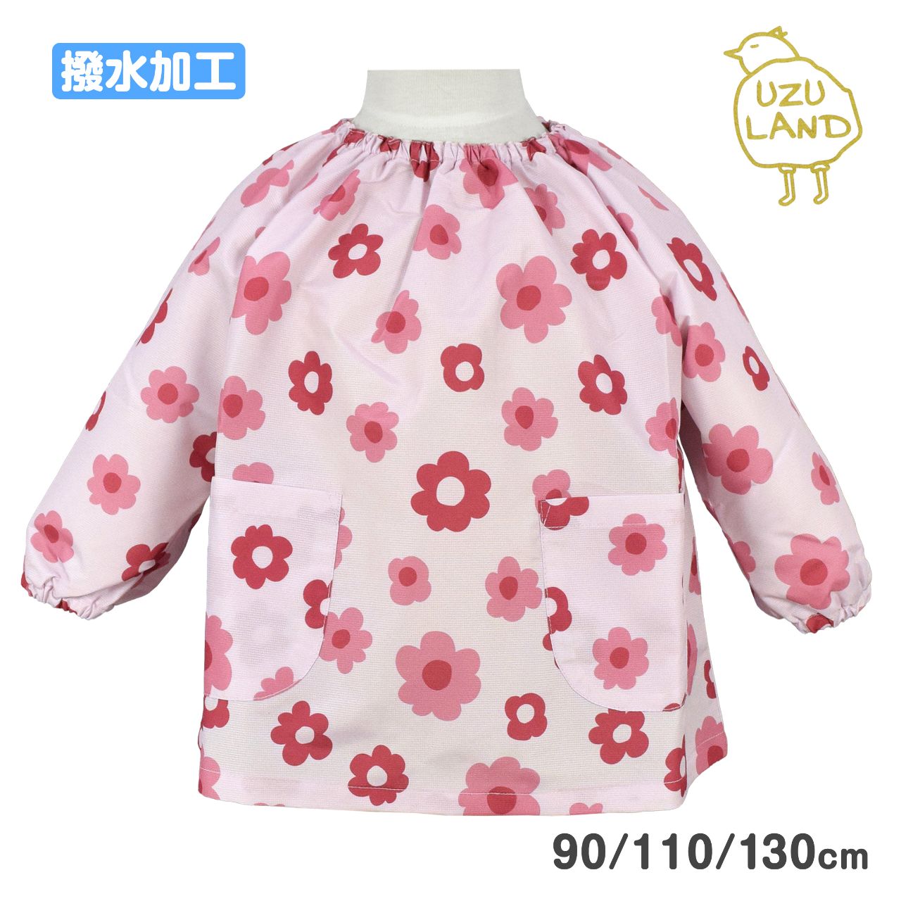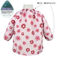かわいい デイジープリントの スモック です。汚れに強い 撥水加工 。しわになりにくく、丸洗い もOK。お砂遊び 工作 などにおススメです。襟ぐり、袖口ゴム入り。ポケット2つ付き。